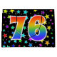 Den här spännande, roligt- och vibranta presentsäcksdesignen har en färgstark stjärna i mönster, tillsammans med siffran "76" med ett flerfärgat regnbågsspektrum som övertoning mönster, på en svart färgad. En presentsäck som denna kan vara en roligt, ett sätt att slå in gåvor eller presenter på för att få någon 76:e födelsedag, eller kanske för ett par 76:e bröllop-årsdagen eller något annat 76:e evenemang. [~Z0000347]