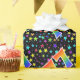 Den här spännande, roligten och det pulserande pappra designen har flera färgstarka stjärnformer, tillsammans med siffran "77" med ett flerfärgat regnbågsinspirerat spektrumövertonat mönster, i svart färgad. Att kasta papper som detta skulle kanske vara ett roligt för att slå in presenter eller gåvor som ges för någons sjuttiosjunde födelsedag, eller kanske för ett par sjuttiosjunde bröllop-årsdagen, eller något annat 77:e evenemang. [~Z0000345]