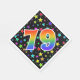 Den spännande, roligt och pulserande pappra napkin-designen har flera färgstarka stjärnformer, tillsammans med siffran "79" med en flerfärgad regnbågsinspirerad spektrumövertoning mönster, på en svart färgad. Pappra napor som denna kan vara roligt till använda vid ett party som hålls för att hedra någons sjuttionionde födelsedag, eller kanske ett pars sjuttionionde bröllop-årsdag, eller något annat 79:e evenemang. [~Z0000346]