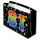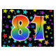 Den här spännande, roligt- och vibranta presentsäcksdesignen har en färgstark stjärna mönster, tillsammans med siffran "81" med en flerfärgad regnbågsinspirerad spektrumövertoning mönster, på en svart färgad. En presentsäck som denna skulle kanske kunna vara ett sätt att slå in gåvor eller presenter på roligt för någons åttio första födelsedag, eller kanske för ett pars åttio första bröllop-årsdag eller något annat 81:a evenemang. [~Z0000347]