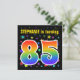 Den spännande, roligt, pulserande födelsedagsfest inbjudan-designen har en färgstark stjärna mönster, tillsammans med siffran "85", som har ett multifärgat regnbågsinspirerat spektrum eller övertoning mönster. Namn på framsidan kan anpassas. Baksidan innehåller information om anpassningsbarna om party. Födelsedagsfest inbjudan som detta kan skickas till gäster från inbjudan till en födelsedagsfest som hålls för att fira någons åttio femårsdag. [~Z0000349]