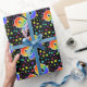 Den spännande, roligt och pulserande pappra designen har en färgstark stjärna som formar mönster, tillsammans med siffran "90" med ett flerfärgat regnbågsspektrum som mönster, på en svart färgad. Det kan vara en roligt, ett sätt att slå in gåvor eller presenter på lycklig för någon nittonårsjubileum, eller kanske för ett par nittonårsjubileum i bröllop eller något annat 90:e evenemang. [~Z0000345]