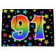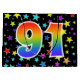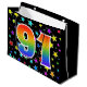 Den här spännande, roligt- och vibranta presentsäcksdesignen har flera färgstarka stjärnformer, tillsammans med siffran "91" med en flerfärgad regnbågsinspirerad spektrumövertoning mönster, på en svart färgad. En presentsäck som denna kan vara en roligt, ett sätt att slå in gåvor eller presenter på för 90 första födelsedag, eller kanske för ett par 90 första bröllop-årsdag eller något annat 91:a evenemang. [~Z0000347]