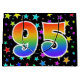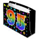 Den här spännande, roligt- och vibranta presentsäcksdesignen har många färgstarka stjärnformer, tillsammans med siffran "95" med en flerfärgad regnbågsinspirerad spektrumövertoning mönster, på en svart färgad. En presentsäck som denna kan kanske vara ett sätt att slå in gåvor eller presenter på roligt och lycklig på 95-årsdagen, eller kanske på 95-årsdagen för ett par bröllop eller något annat 95-årsjubileum. [~Z0000347]