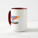 Börja din dag med stil med denna iögonfallande kombinerade kaffemugg med en livfull grafisk design. Den ljusa vita utsidan ger den perfekta duken för konstverk, mönster, citat eller kreativa grafik, medan randen och handtaget är färdiga med en rik färgad glasyr som lägger till en djärv accent.
