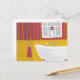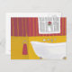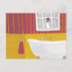 Den roliga originaldigitala oljemålningen av ett badrum med senapsvarvspån och gult strimlade ro tapet på detta vykort har en sitta i klo fot under ett fönster där en enda ro i en kvävd gult sitter på sillen.