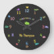 Anpassa en analog klocka i roligten "klassrum av" med skarpa färgader och punkter och söta små zoomdjur.
