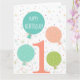 Cute Pastel Färgad Balloons Grattis på födelsedagen, första födelsedagskort