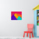 En geometrisk utformning av coolan. Många briljanta trianglar och pyramider i färgaden. Färg omfattar rosa röda, turkosa blå, ljusblå, royalets lila, orange och gult. En modern contemporary.