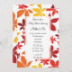 Inbjudan gäster till september, oktober eller november före baby firande med den naturliga Färgaden Höst löv babyinbjudan. Den här söt anpassningsbarna Inbjudan med automatisk babystövel har röd, orange och gult löv med vit bakgrund.