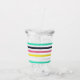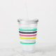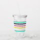 En färgstark kan kyla med en stripe mönster. Mugg har en öppen bakgrund med vågrät rand i rosa, gult, turkos och svart. Det är designat att passa din favoritdryck.