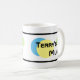 Klassisk vit liten personlig mugg med färgglada cirklar och svarta ränder. Du kan anpassa med din egen text, färger på design och text kan anpassas ytterligare genom att välja fler alternativ