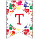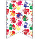 Färga barn målade handavtryck från Grattis på födelsedagen Bunting Flaggor, som är idealiskt för dina barn och småbarn hantverkare party. Den här buntningsdesignen i barns födelsedag visar ett övertryck av färgfulla handavtryck med GRATTIS PÅ FÖDELSEDAGEN som spelas ut i röd typografi inuti en vit cirkel på varje flagga. Matchande party-förråd och presenter finns tillgängliga. Välj bland ett stort urval av barndesign efter Berean Designs. Det finns en alternativ version av anpassadet.