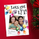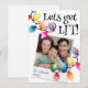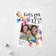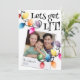 Skicka din julglädje denna säsong med ett personligt julkort med texten "Låter oss festa"! Med en ljus och tydlig display av lampor runt ditt familjefoto och namn är detta kort garanterat för en bestående intryck. Sätt den perfekta avslutningen på din jul med denna unika och festliga design!