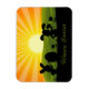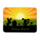 Solnyillustration Påsk med två söta kaniner i tecknad som målar ett Påskägg på naturbakgrund.
