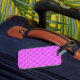 Färgfull bagagetapp med en slips mönster bakom färg.