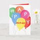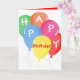 Färgfyllt könsmognadskort med sex färgstarka ballonger på framsidan, med Grattis på födelsedagen på dem. Insidan av kortet görs med röd text med vit anpassningsbar. Underbart kort för alla, oavsett ålder.