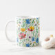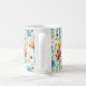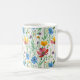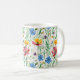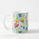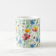 Mugg i Snabb färgad av vilda blommor i olika former och storlekar som är spridda över en vit bakgrund. De pulserande petalerna sträcker sig från blues and grönt till red, orange och gult