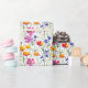 Svälla pappert i Jokerblommor med färgad i olika former och storlekar som är spridda över en vit bakgrund. De pulserande petalerna sträcker sig från blues and grönt till red, orange och gult