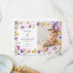 De här briljanta och söt Baptism- eller Christening-tacket som du använder har en färgstark botanisk vilda blommor i ram, med vackra blommor, löv och ett matchande kor. Ditt baby-foto är också med. En giftig, feminin design för flicka. Det här vackra tackkortet är också perfekt för andra religiösa firande, till exempel Bekräftelse eller Första Heligan Communion.