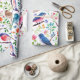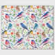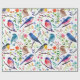 Den här charmerande pappra designen visar vackra fåglar och lekande blommor som frossar på en skarp vit bakgrund. Idealisk för dem som förtär fåglar och naturen är det perfektens val att slå in gåvor till vänner och familj.