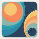 Abstrakt illustration av färgfulla stil-cirklar i gult, blått, orange och turkos färg på marin blå bakgrund
