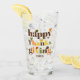 Färgfull typografi och löv Thanksgiving faller glas. Texten "Happy thanksgiving" i färglös typografi och höst löv i brun, orange, oliv grönt och gult tillsammans med anpassadet adderas till Thanksgivingens glas.