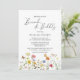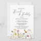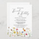 Färga vilda blommor och fjärilar skapar en tuff, botanisk design för brunch och bubblande inbjudningskort för möhippa. Gult, orange, rosa och blåa blommor dansar över grund. Den serif och kursivt typsnitt lägger till i denna vackert klassiska design.