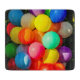 Ett kluster, ett gäng ljusa och färgstarka leksak-ballonger mot mörkens bakgrund. Texturerad fotografi.