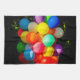 Ett kluster, ett gäng ljusa och färgstarka leksak-ballonger mot mörkens bakgrund. Texturerad fotografi.