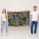 Färgfull löv mönster i färgens regnbåge anpassningsbar med modern täckfilt som har en färgstark mönster med löv på svart.