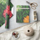 Ett livligt och färglöst digitalt mönster med vibrerande krysantemum i skuggor av rött, orange, blått och grönt, som ställs mot en rik bakgrund av lush grönt foliage. Denna öga-fångstdesign ger en känsla av färskhet och naturlighet, perfekt för att tillföra färg och liv till vilken produkt som helst. Perfekt för dem som uppskattar botaniska konst och vill förse sitt utrymme med blommigt skönhet.