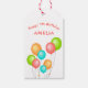 Cute Colorful Party Balloons Kid Grattis på födelsedagen Gift-Märkre. Märkre på kalkfödelsedagen med fyra färgstarka ballonger i rött, grönt, blått och orange färg. Anpassa den med ditt barns namn.