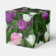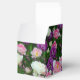 Ett foto av tulpaner i vitt, rosa och lila som blandats med andra små blommor och löv.