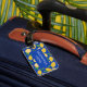 Färgfull citruscitruscitron med mönstrat bagagetagg på färglös blå personlig. Anpassa med din egen namn och kontaktinformation. Kontakta mig om du behöver mer hjälp med att anpassa dig. Originalteckningar från konstnärer äger digitala teckningar. © Zoe Chapman Design