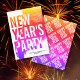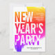 Inbjudan till en grupp med färgstarka vattenfärger för konstnärlig Nyårsafton. Med texten "Nya årets Party" visar inbjudan en färgstark vattenfärgborst i gult, orange, rosa och lila. Baksidan är täckt med en färglös bakgrund mönster i texten "Gott nytt år".
