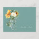 Begravningstack. Familj namn och tack på baksidan. Typografi. Solros och Peony blommigt spray. Sage.