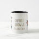 Färga vattenfärgsmällor och blommor mugg med ord: Ändra tillväxt och omformning.
