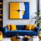 En inbjudan till betraktelse, där levande gult och djupblått möts i en poetisk dialog. Lager av färg och uttrycksfulla penseldrag skapar texturer som frammanar både rörelse och stillhet samtidigt. Vitt fungerar som en bro mellan extremer, medan subtila detaljer tillför djup. Perfekt för miljöer som söker inspiration och balans, förvandlar den rum till kreativa tillflykter. Ett verk som talar direkt till själen, och kombinerar energi och frid i en enda konstnärlig gest.