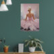 En abstrakt målade på ett elegant sätt porträtt av en ballerina bakifrån i en rosa tullkostym.