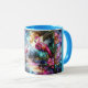 En drömlik scen inspirerad av glasmålning vecklar ut sig under en lysande måne där graciösa rosa flamingos står bland frodiga tropiska blommor och strömmande vatten. Juveltonade blå, grönblå, magenta och varma gyllene konturer skapar en lysande mosaikeffekt som påminner om jugendglas och utsirade fönsterpaneler. Stora botaniska blommor, ömtåliga blad och mjuka reflektioner krusar över vattnet och tillför rörelse och stillhet till kompositionen. Atmosfären känns förtrollande och lätt mystisk och blandar tropisk trädgårdssköndhet med himlakropparnas nattliga energi. Rika färggradienter och gyllene linjer ger designen en strålande, handgjord känsla samtidigt som den bibehåller en lekfull, modern bohemisk estetik. Balansen mellan livfulla rosa flamingos mot djupa kosmiska blå och