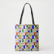 Den här väskan har en modernt design i mitten av århundradet av ett rutnät med kvadrater och rektanglar av färgad. Det finns också färgader på rutnätet linjer. Om du tycker om designen men föredrar olika färg, säg mig.