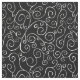 Snyggten har handmålad rullningsvit kurvor i den här översiktliga upprepningsdesignen på en svart bakgrund. Den dekorativa bilden flyter fritt och fetstilt.
