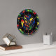 Roligt, väggklocka för flerfärgade ljusbultar.
