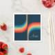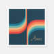 Dubblan Retro stil ger en geometrisk illustration av mönster med turkos, blått, rött och beige rand dekoration mot mörk blått bakgrund. Lägg till ditt namn/monogram eller ta bort texten.
