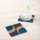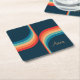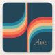 Dubblan Retro stil ger en geometrisk illustration av mönster med turkos, blått, rött och beige rand dekoration mot mörk blått bakgrund. Lägg till ditt namn/monogram eller ta bort texten.