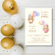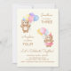 Förlossningsinbjudningar med två söta björnar med party hatt och färgstarka ballonger.
