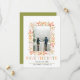 Bröllopet Spara datum meddelande faller i Berries och löv gräns. På framsidan finns en ram som består av bär och löv, texten "Spara datum" i ett färgstarkt teckensnitt och ett foto. Baksidan är av fast oliv grönt färg.