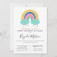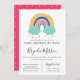 Cute illustrerade färgstark regnbåge, barndusch genom e-postinbjudan. Med Mall kan all text anpassas. Kortets baksida samordnar rosa och vit dood mönster.