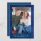 Ett enkelt och färglöst pladkort med helgdag har en strålande blå mönster och klassisk God jul-typografi på framsidan och en solid vinterblå baksida. Se den här samlingen i säsong för att se om det finns ytterligare vibrerande färg i helgdag som är hälsning.